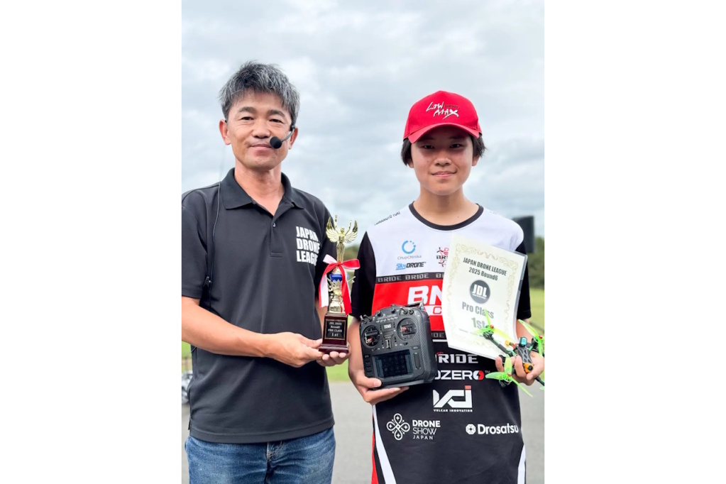 2025年9月21日に兵庫県加東市で開催された「2025 JAPAN DRONE LEAGUE(JDL)」のRound6・Proクラスにおいて、株式会社ドローンショー・ジャパン(本社:石川県金沢市、代表取締役:山本雄貴)がスポンサーする高校生FPVドローンレーサー・山本悠貴選手(15歳)(以下、山本選手)が初優勝を果たした。 山本選手にとってJDL参戦5年目で初のチャンピオンとなり、これまでの挑戦が実を結ぶ形となった。 また、同月12〜14日にドイツ・Aichtalで開催された「2025 MultiGP European Championship」では、18か国86名が参加する国際大会において15位入賞も果たしている。