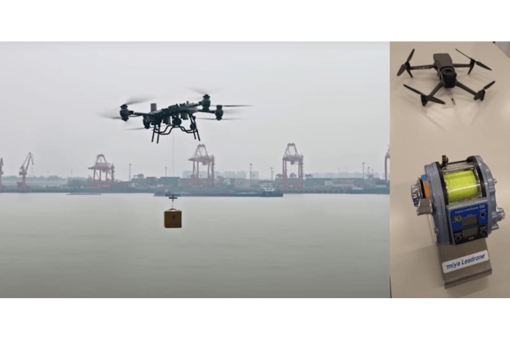 この体験会では、釣具用大型電動リールのトップメーカーである株式会社ミヤマエが開発したドローン係留装置「ミヤ・リードロン」を活用する。