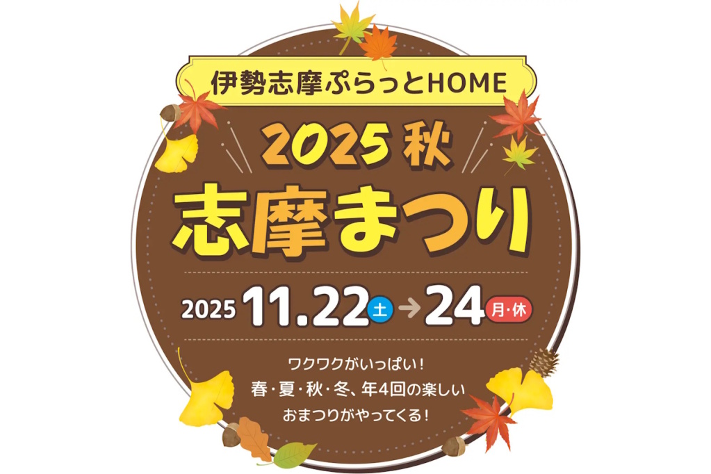 第1回目となる『志摩まつり2025秋』は、2025年11月22日からの3日間、コワーキングカフェ等を備えた地域の交流拠点や観光客の時間待ちスポットとして今年4月に近鉄「鵜方」駅前にオープンした「伊勢志摩ぷらっとHOME」およびアクティビティリゾート施設「志摩グリーンアドベンチャー」にて開催される。