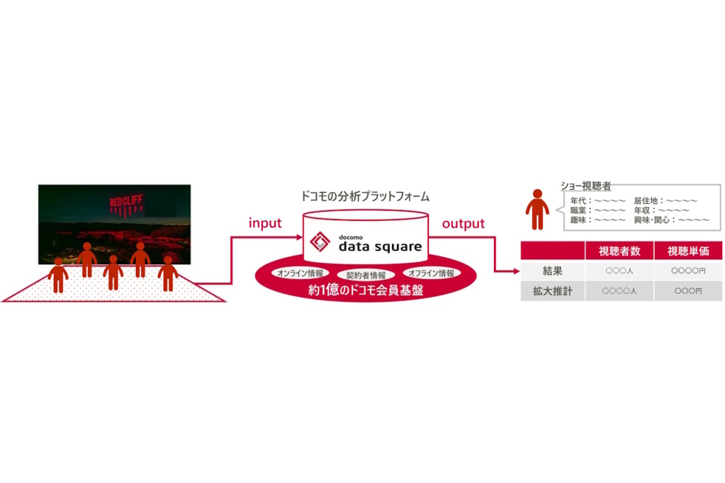 このドローンショーでの広告効果計測には、株式会社NTTドコモ(以下、ドコモ)が保有するデータを基盤とした分析プラットフォーム「docomo data square」を活用。