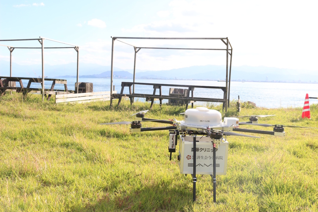 今治市(市長:徳永繁樹)が国家戦略特区の一環で設置している「近未来技術実証ワンストップセンター」による支援のもと、斎藤クリニック(今治市、院長:齋藤早智子)とイームズロボティクス株式会社(本社:福島県南相馬市、代表取締役:曽谷英司)(以下、イームズロボティクス社)が連携し、南海トラフ地震を想定したドローンによる医療品輸送の実証実験を実施した。 離陸地点は今治市内の砂場スポーツ公園(今治市砂場町1-662)、着陸地点はしまなみ海道沿線の大島・海宿千年松キャンプ場(今治市吉海町名駒25)。 来島海峡上空の片道約4kmを約10分で結び、災害時における島しょ部への医療支援の即応性が検証された。
