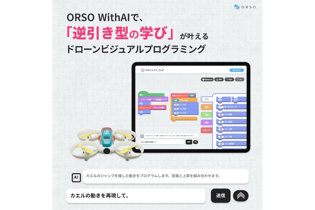 ORSO社、AI設計支援『WithAI回答機能』とドローンビジュアルプログラミングを掛け合わせ、新しい学びのプロセスを実現